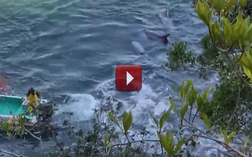 Bild: Misshandlung der 21 Rissos Delfine im Netz vor dem Mörderstrand