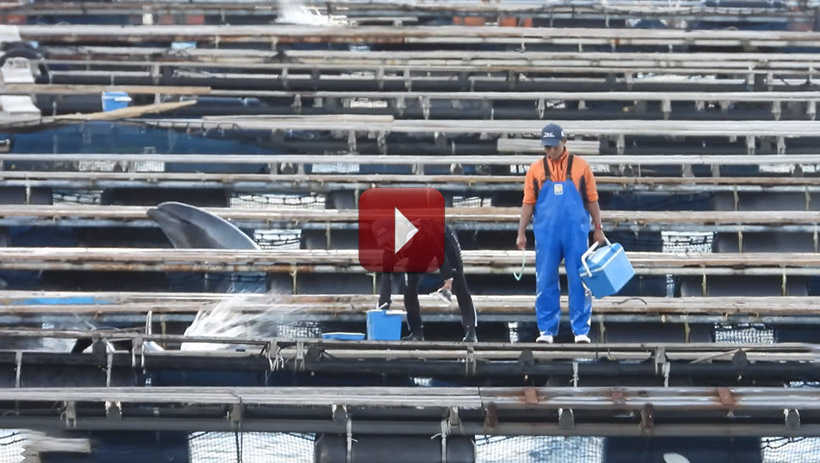 Mehrere Hundert entführten Delfinkinder werden in schwimmenden Gefängiszellen gefangengehalten. Völlig traumatisierte fühlende Delfinkinder, einige durch die Brutale Gewaltanwendung und Misshandlungen verkrüppelt, hatten miterlebt wie ihre Familienmitglieder gequält und ermordet wurden.