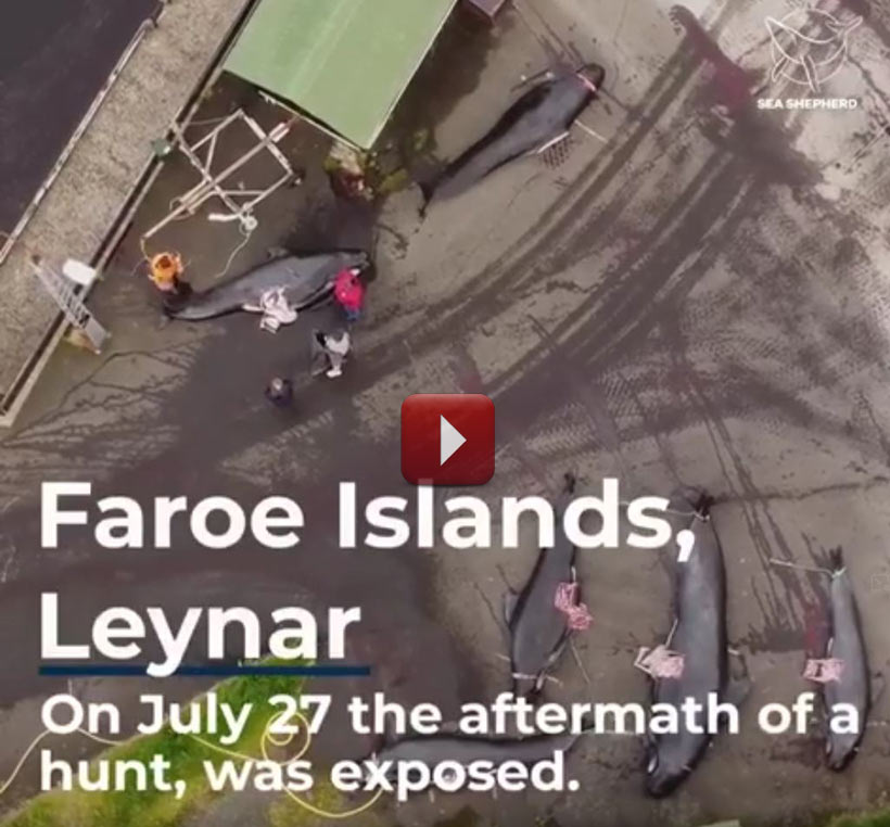 Video - Föten von getöteten Delfinen werden in den Färöer Blutsport-Inseln entsorgt. Von Sea Shepherd am 27. Juni 2021 mit einer Drohne gefilmt