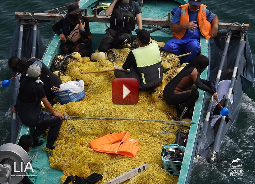 Video -Taiji Japan by Kunito: Entführte Delfine werden in ein Schwimmkäfig im Hafen geworfen