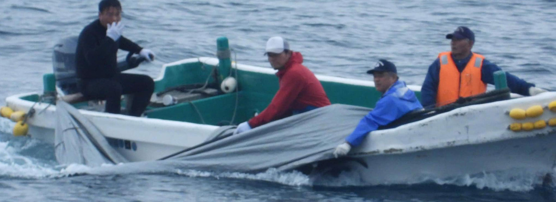 Bild by Ren Yabuk: Delfine wurden über viele Minuten lang in schwarzen Nez oder von Tauchern festgehalten. Im schwarzen Netz wurden die wehrlosen Säugetiere unter die Planen geschleppt