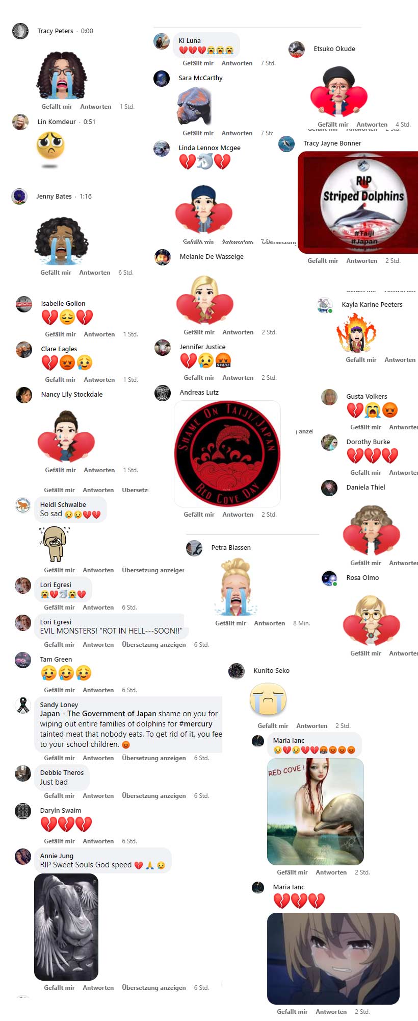 Dieses brutale Gewaltverbrechen an diesem Streifendelfin Kindergarten hat stattgefunden, weil mehrheitlich die meisten Politiker weltweit zwar von diesen Verbrechen an Walen und Delfinen in Japan, ins besonders in Taiji wissen, aber aus Profitgier darüber schweigen. Handelsabkommen sind den Politikern wichtiger als das Leben unschuldiger Wesen. Renommierten Wissenschaftlern hatten schon vor 12 Jahren im Helsinki Abkommen von 2010 gefordert, Delfine und Wale in internationalen Gesetzen eigenständige Rechte zu geben und sie als Personen anzuerkennen. Namentlich ‚Cetacean‘ Rights genannt.