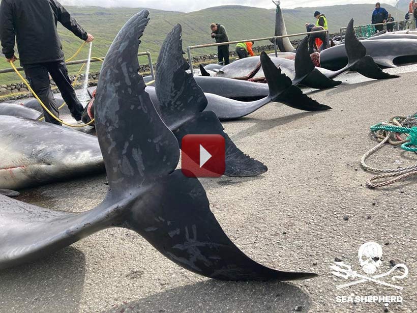 Sea Shepherd Crew: "Wären wir nicht dort gewesen, um dies zu berichten, hätte es NIEMAND bemerkt". Und es wird jetzt erfolgreich in der färöischen Statistik fälschlicherweise oder absichtlich als "Weisseitendelfin" Tötung bezeichnet und nirgendwo auf der Welt wären Schlagzeilen geschrieben worden.