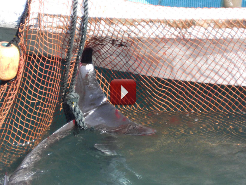 Bild: Wehrlos, in Panik und völlig erschöpft, wurden die Breitschnabel Delfine mit grösster Gewalt misshandelt