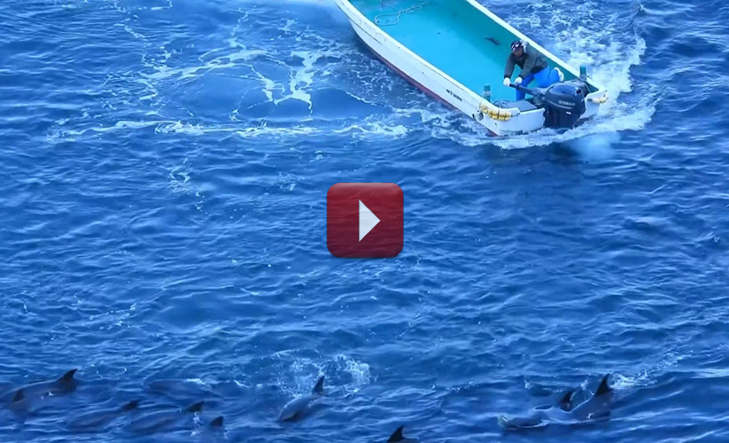 Beim lösen des Netzes zum Eingang in die Bucht, gerieten die jungen Delfine in Panik und schossen in das Netz, ein junger Delfin blieb darin hängen und geriet zu ertrinken (Im Video zu sehen). Killer konnten ihn nach wenigen Minuten wieder herausreissen. Danach begang der Terror mit mehreren Jagdschiffen erneut, die sie ins Meer hinaustrieben.