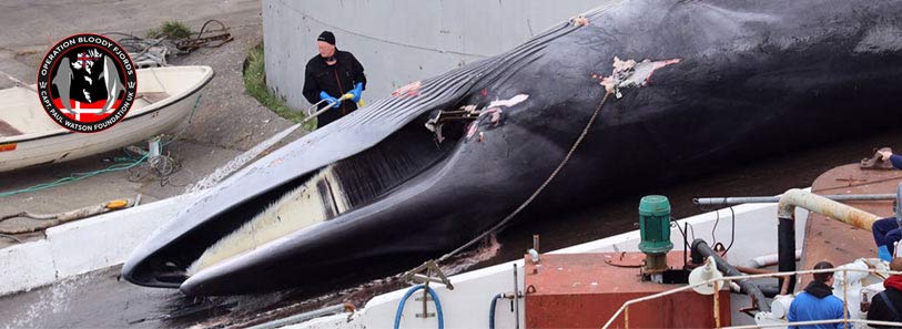 Titelfoto:ganz oben by Captain Paul Watson Foundation UK: Einer der brutal ermordeten Pilotwale mit schweren Verletzungen am Kopf.