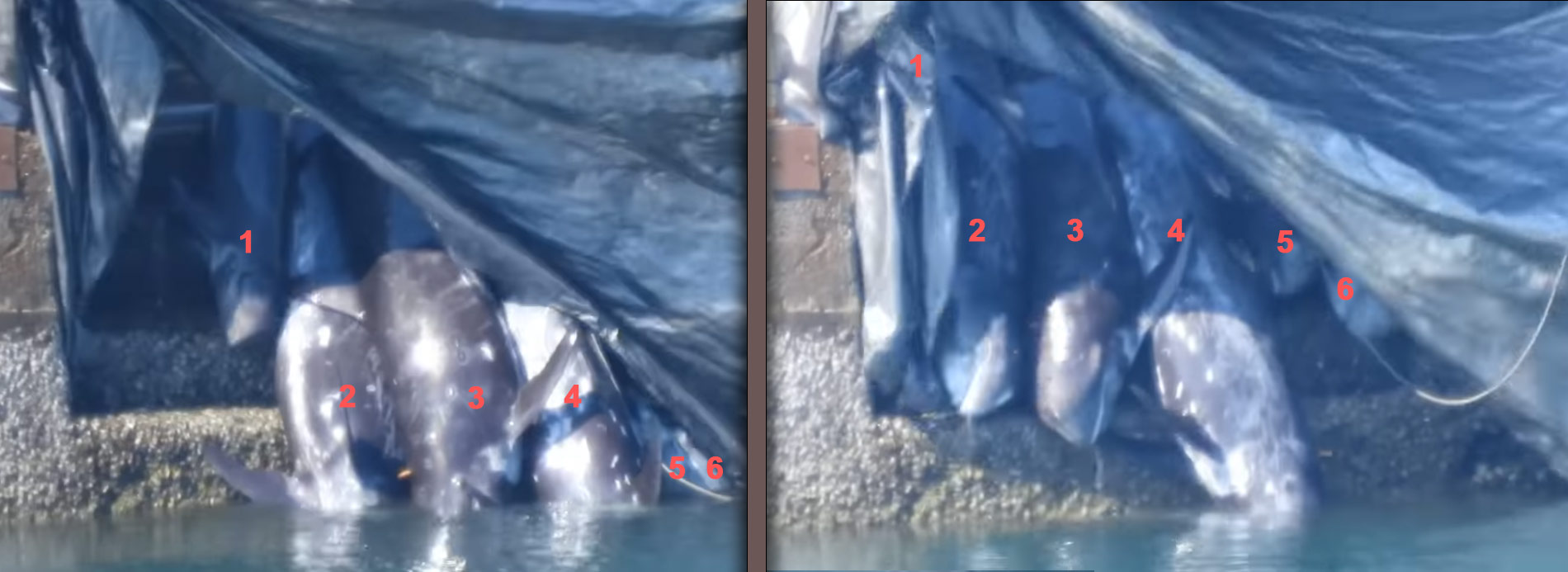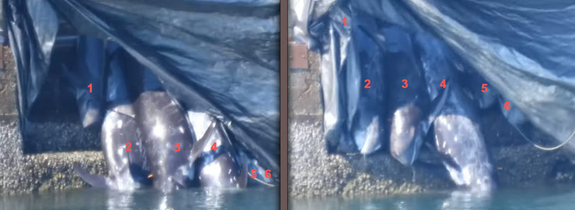 Ein sehr trauriger Tag, als ein kleiner Kindergarten von Risso’s Delfinen in die Bucht getrieben wurde. Vier lebende Babydelfine brachten die Killer mit einem Jagdschiff zurück ins offene Meer hinaus zum Entsorgen. 6 Delfine, 5 Erwachsene und ein Delfinkind wurden abgeschlachtet.