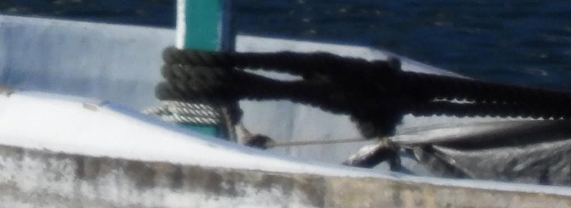 15:11 Uhr: Die Leichen von sieben Risso’s Delfinen wurden mit Seilen an ein Boot gebunden und unter grauen Laken versteckt von der Tötungsstelle hervorgezogen, die restlichen Leichen oder halbtoten Delfine dieser Familie von 13 Risso’s, drei mit dem zweiten Boot und drei mit dem dritten Boot. Alle Delfine wurden mit diesen drei Booten der Killer ins Metzgerhaus geschleppt.