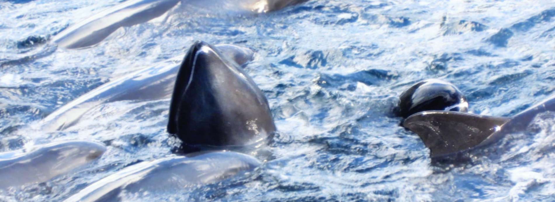 黒いカーテンの下、約18頭のカズハゴンドウの群れは全滅した。