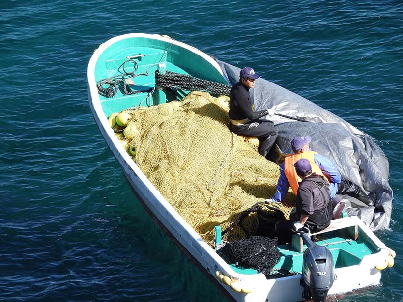 いよいよ入り江に近づいてきた時には猟船6隻が黒煙を執拗に吐き、スキフボート3隻も加わっていた。