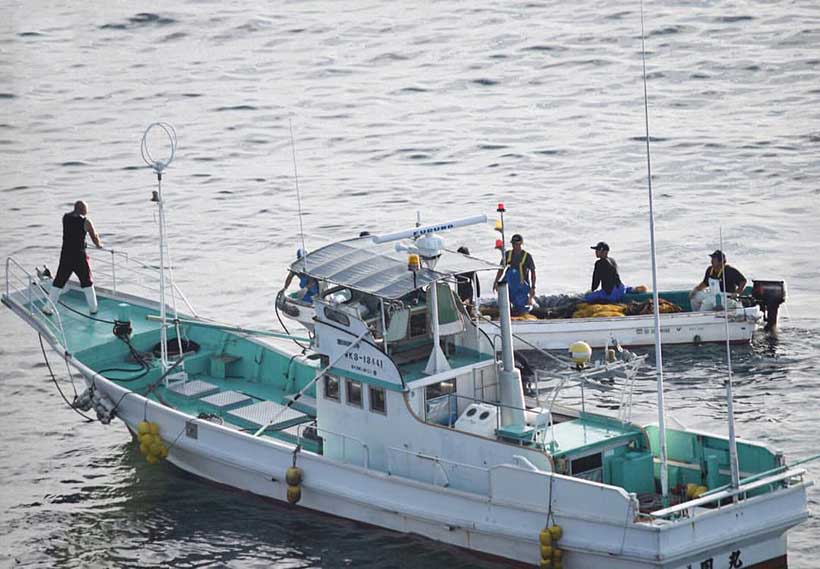 Kurz nach 11.00 Uhr Lokalzeit kehrten die Fischer in die Bucht zurück und fing an die Planen zu entfernen. Die Netze wurden eingezogen.