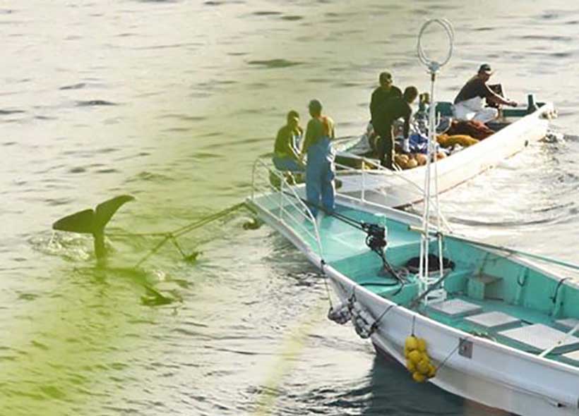 Nachdem die Netze enger gezogen wurden begannen sechs Taucher zusammen mit den Fischern die geschwächten Pilotwale nacheinander unter die grauen Blachen zu drängen. Die deutlich geschwächten Pilotwale, die ausschliesslich aus jugendlichen und Baby bestanden, wehrten sich kaum. Ihre Lebensenergie war nach 4 Tagen gefangen in der Bucht ohne Nahrung ausgehaucht.