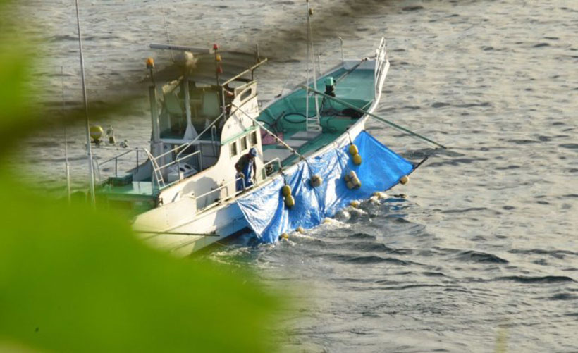 Ungefähr 25 Minuten später verliess ein Boot die Bucht mit Planen an beiden Seiten angebracht, unter denen sich zwei „getötete“ Pilotwale befanden. Das Boot steuerte auf ein grosses Jagd Boot zu, das sich weiter draussen auf dem Meer befand um die toten Pilotwale zu übernehmen. Einer dieser zwei angeblich toten Pilotwale kämpfte immer noch um sein Leben, er schlug noch lange an den Seilen die an seiner Schwanzflosse angebunden waren, er bewegte noch seinen Kopf aus dem Wasser um zu versuchen zu atmen.