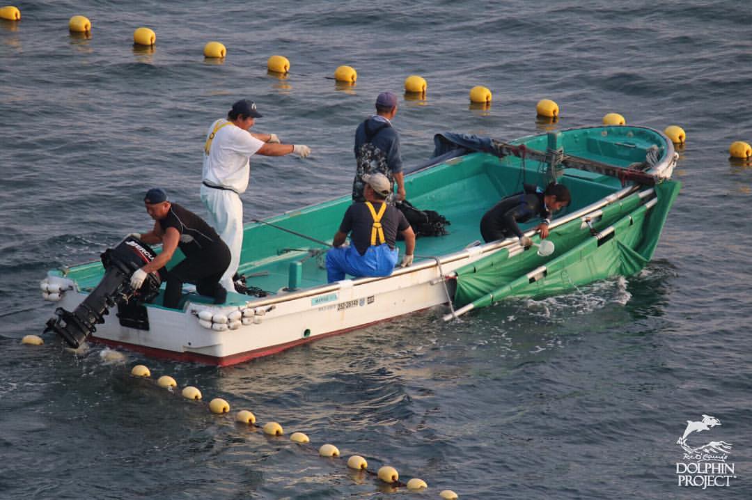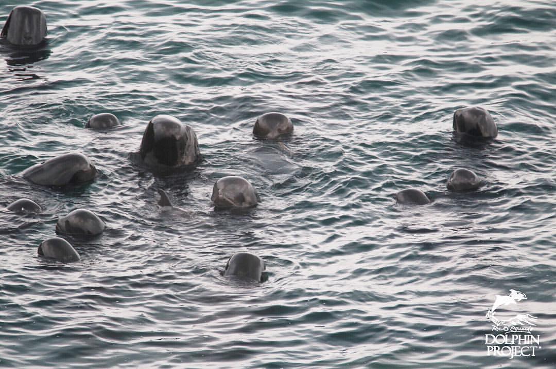 Gestern trieben die Delfinjäger ungefähr 100 Delfine und 25 Pilotwale in die Mörderbucht von Taiji und hielten sie über Nacht in Netzen gefangen..