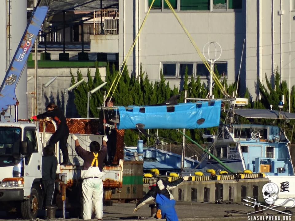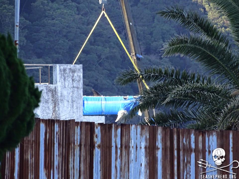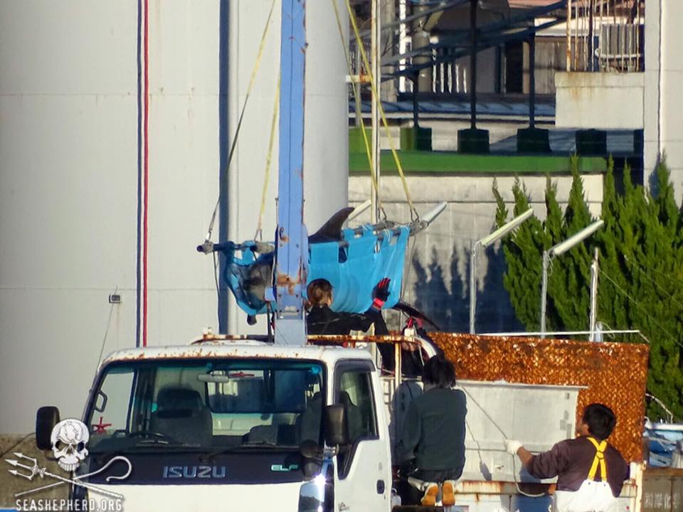 Während die Boote der Delfin Mörder in Taiji auf der Suche nach unschuldigen Delfin Familien waren, wurden mehrere Tümmler von den Schwimmkäfigen im Hafen auf Transporter verladen und in die Dolphin Basis überführt.