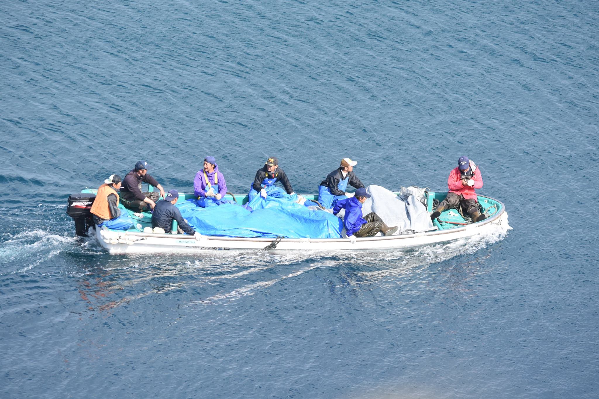 Mit zweit Booten fuhren die Mörder die vielleicht noch halblebenden Körper der ermordeten Delfine ins Metzgerhaus, wo ihr Queksilber verseuchtes Fleisch verarbeitet wird und in Schulen den Schulkinder als Mittagsmahlzeit verabreicht wird.