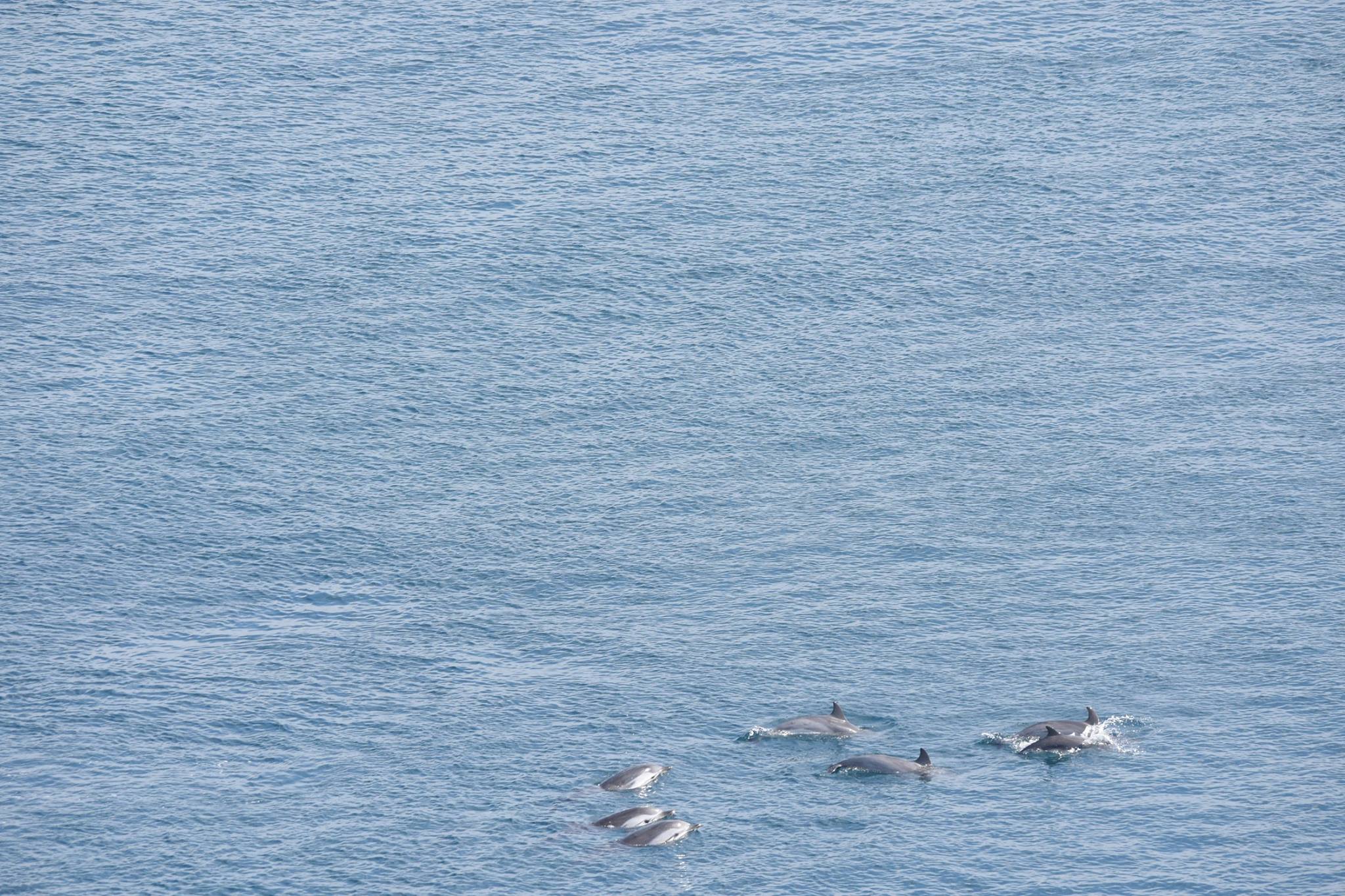 Nicht weit von der Mörderbucht entfernt fanden sie eine sehr grosse Schule streifendelfine.
