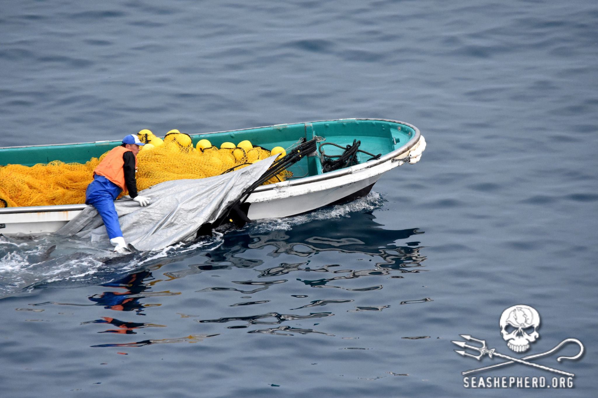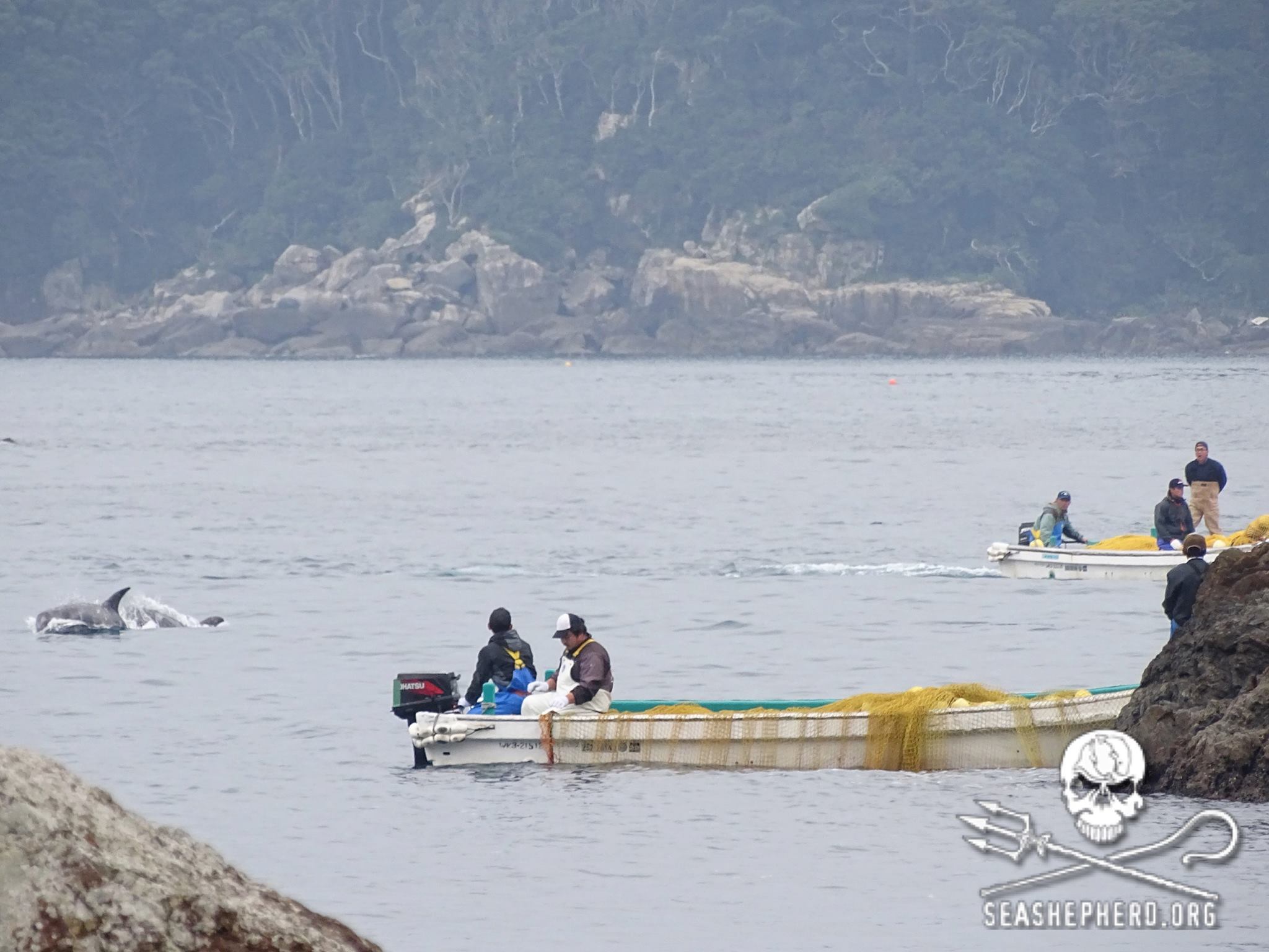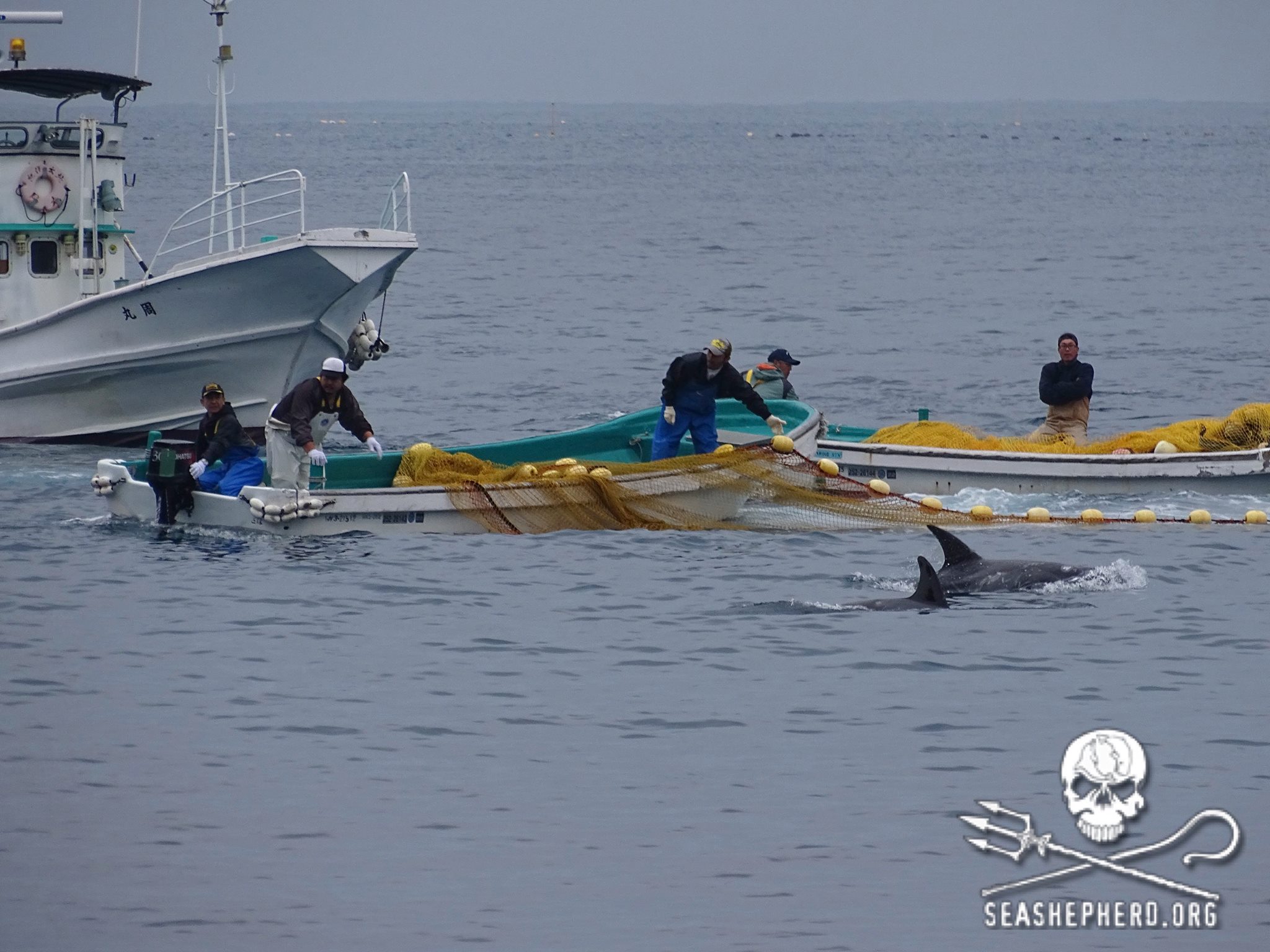 Die Delfine waren kaum in der Bucht in Netzen eingekesselt um ihre Flucht zu verhindern, zogen die Mörder die Delfine einen nach dem anderen mit Seilen an der Schwanzflosse angebunden unter die Planen. Alle Delfine wurden rücksichtslos, gewalttätig misshandelt und brutal abgeschlachtet.