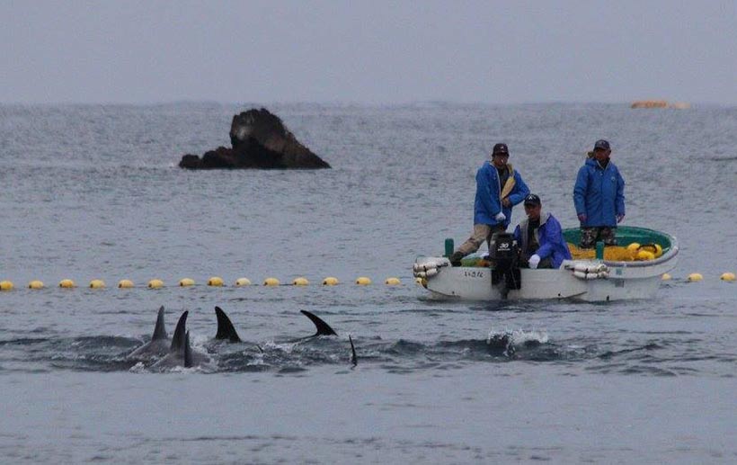 Letztendlich gelang es keinem der Delfine zu entkommen, so wurden sie in der Bucht mit Netzen eingekesselt. Schiffe mit Jägern und Ausbilder fuhren in die Bucht, alle Delfine wurden unter die Planen am Tötungstrand gedrängt. Trainer arbeiteten Seite an Seite mit den Mördern, wählten zwei Risso’s Delfine für eine Leben in der Sklaverei aus. Diese beiden Delfine werden nun den Rest ihres Lebens in der Gefangenschaft verbringen, wo sie für Lebensmittel in kleinen Betonbehälter für unsinnige Tricks gezwungen werden.