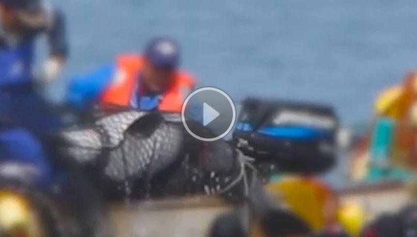 Die Killer sprangen eilig mit Dollar Zeichen in den Augen ins Wasser und fuhren mit den Misshandlungen fort um die in endlosen Netzen gefangene Delfin Familie zu foltern. Als der Wal Museum Mitarbeiter eintraf, begannen die Boote mit der Hetzjagd und der wahre Horror begann für vier pazifische Weissseiten Delfine.