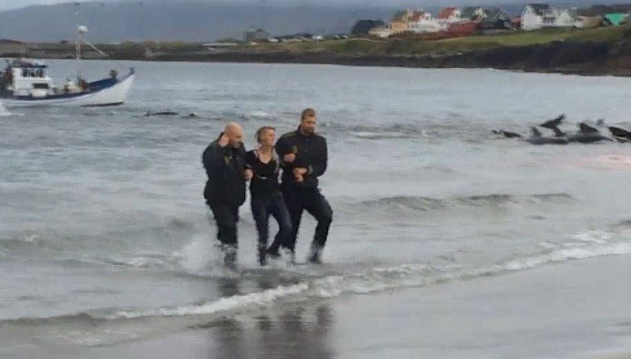 Video wie Seasheperd Volontäre für das Leben der Wale kämpfen und von der Dänischen Polizei auf Färöe festgenommen wurden!