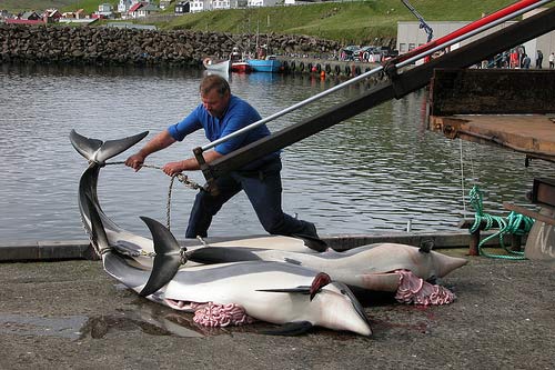 Das einzige Problem an dieser lächerlichen Aussage ist die Tatsache, dass die Färinger im August 2013 450 Weißseitendelfine abgeschlachtet haben.