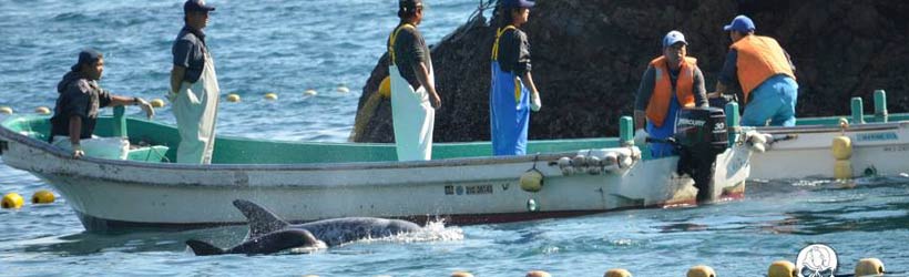 The lust for blood continued today here in Taiji. The killers left the harbor in search of a pod just after daybreak. Nearly 3 hours later, they found what they were looking for...