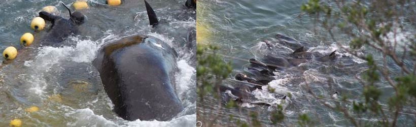 This morning 14 Pilot whales were brutally slaughtered in the killing cove, 1 lone juvenile was taken prisoner for a life of captivity and 13 remaining young juveniles were driven back out to sea....