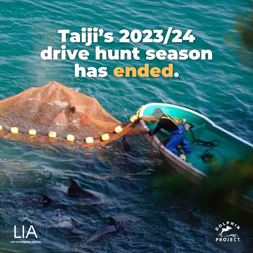 Die 6-monatige Delfintreibjagd-Saison 23/24 ist beendet. Schlachtungen und Entführungen waren WEIT niedriger als die vorherigen Saisons (etwa 23% der Jagdquote dieser Saison). Die Jahrzente lange Jagd hat verheerende schädliche Auswirkung auf Delfinpopulationen. Wir sehen dies daran, seit Jahren konnten die Kuller viele Spezies wie Breitkopf-Pilotwale und andere Delfin Arten auf der Todes und Entführungsliste stehend, nicht in die Bucht treiben. Nicht weio sie es nicht können, sonder kaum mehr welche dieser Delfine am Leben sind. Die Killer von Taiji sind Profit orientierte Fischer, eine schädliche Spezies für undschuldige Delfine und Wale.