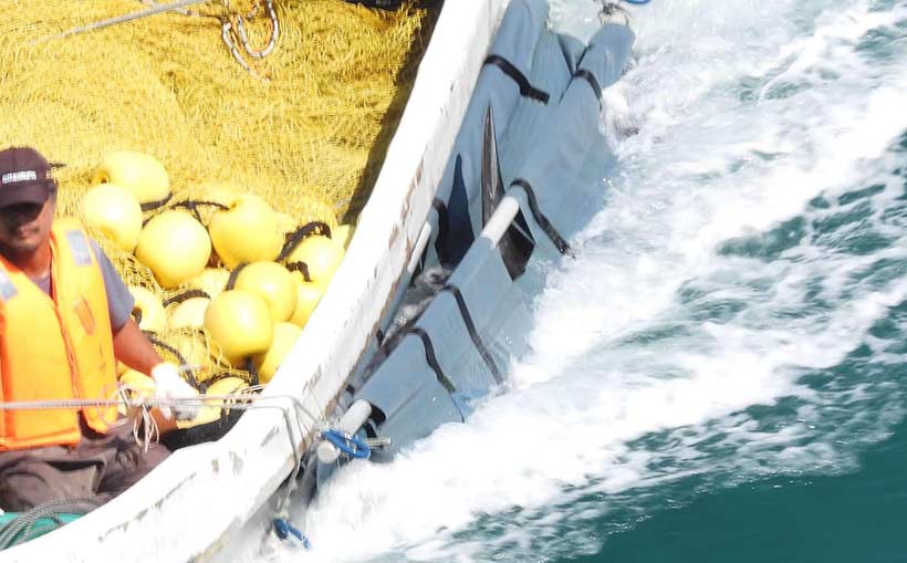Insgesamt 18 entführte Jungdelfine wurden heute verteilt in die Schwimmgefänginsse im Taiji-Hafen und in die Moriura-Bucht gebracht. Alle Delfine werden eine weitere Nacht in der Bucht gefangengehalten. Mindestens ein bestätigter Delfin ist in den Netzen ertrunken.