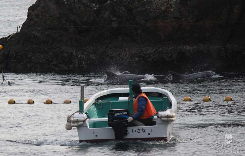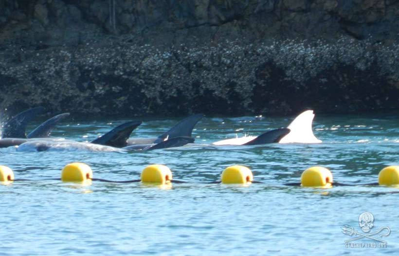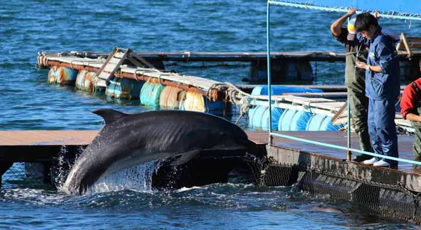 Selbst wenn es heute ein Tag der blauen Bucht ist und keine Delfinfamilien in die Bucht getrieben und brutal geschlachtet wurde, ist es wichtig zu wissen, dass ungefähr 90 traumatisierte Delfine eingekerkert in kleinen Netzen in Gefangenschaft verbringen müssen.