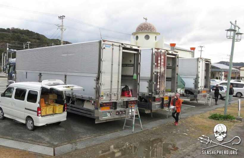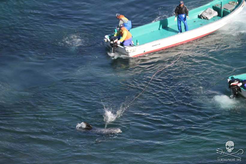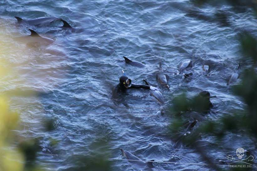 Die Bucht färbt sich wieder rot mit dem Blut unschuldiger Delfine in Folge von zwei Tagen. Um ca. 09.25 Uhr Lokalzeit Japan, entdeckte die Mörderflotte eine Schule von Rundkopfdelfine, verschwendeten keine Zeit um sich zu formieren und die Delfinfamilie endgültigen in den Untergang zu treiben....