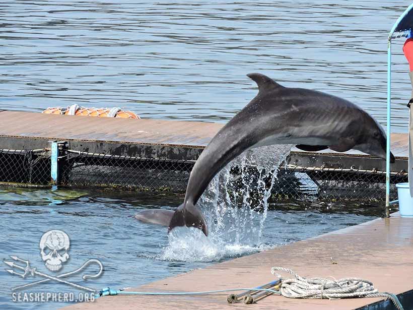 Die Trainer der Delfin Mafia in Taiji hungern Delfine gezielt aus, durch Nahrungsentzug werden sie gehorsam und gefügig gemacht.