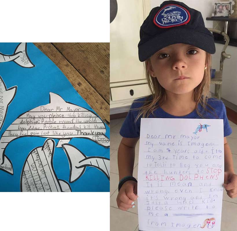 Morgen werden viele Delfine und Pilotwale in Taiji Japan misshandelt, für Delfinarien Shows oder für "Schwimmen mit Delfinen" entführt oder auf abscheuliche Weise abgeschlachtet.