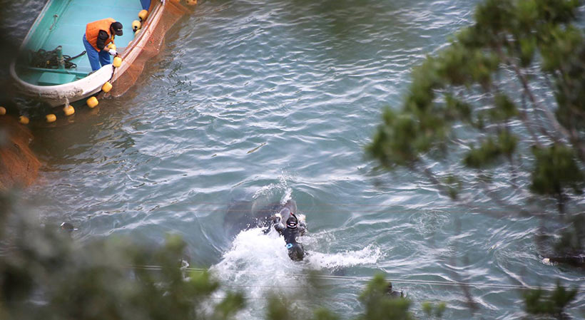 Früh am Morgen fuhren 12 Jagdboote aus dem Hafen von Taiji aus um Delfine zu jagen. Nach ungefähr 2 Stunden waren verräterischen Anzeichen durch schwarzen Rauch der Schiffe zu erkennen...
