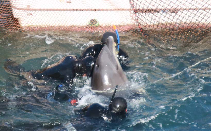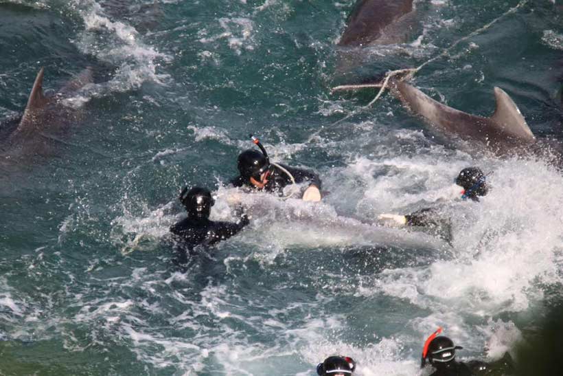 Endlich, nach fünf Tagen Schrecken und Misshandlung, am Nachmittag um 13:54 Uhr Lokalzeit-Japan war der Terror für 200 + Delfine vorbei...