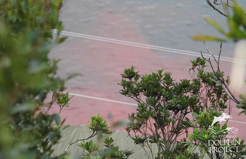 Nach einer Woche „Blue-Cove-Tage“ dank Mutter Natur verwandelte sich heute die Bucht der Grausamkeit wieder in das tödliche Rot mit vergossenem Blut von 15 Streifendelfinen...