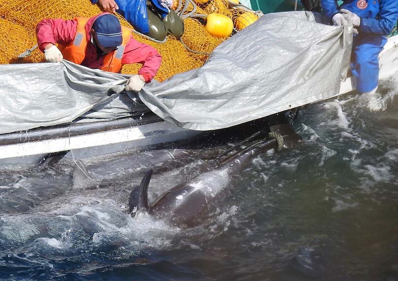 Nach weniger als einer Stunde nachdem die japanische Delfin-Vernichtungsflotte den Hafen von Taiji verlassen hatte...