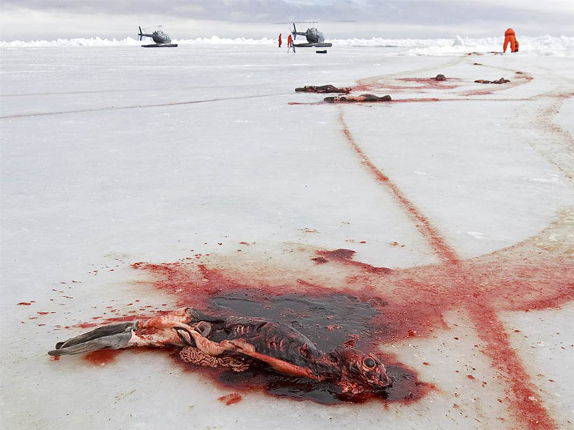 Die kanadischen Robbenjäger (Mörder) töteten mehr als 52 206 Robbenbabys in dieser brutalen Jagdsaison. Dies ist die offizielle Zahl von Kanadas Department of Fisheries and Oceans (DFO), sie schliesst Robben in der Todesliste aus die verwundet entkamen, was die Beamten als "geschlagen und verloren" bezeichnen. Diese verletzten Robben, angeschossen oder mit eingeschlagenen Schädel flohen oder glitten den Mördern aus den Händen, um später qualvoll zu sterben.