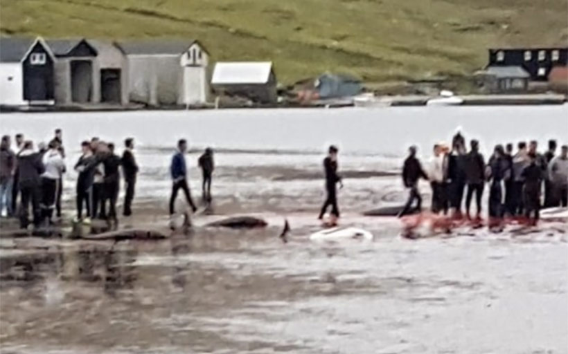 Laut Färöischen Medien wurden gestern Abend gegen 23:00 Uhr 150 Delfine (Pilotwale) ermordet. Eine Horde blutrünstiger Neandertaler, bewaffnet mit langen Messern, Seilen und Hacken, stürzte sich auf die unschuldigen Delfine. Jung und Alt nahmen am Massenmord teil.