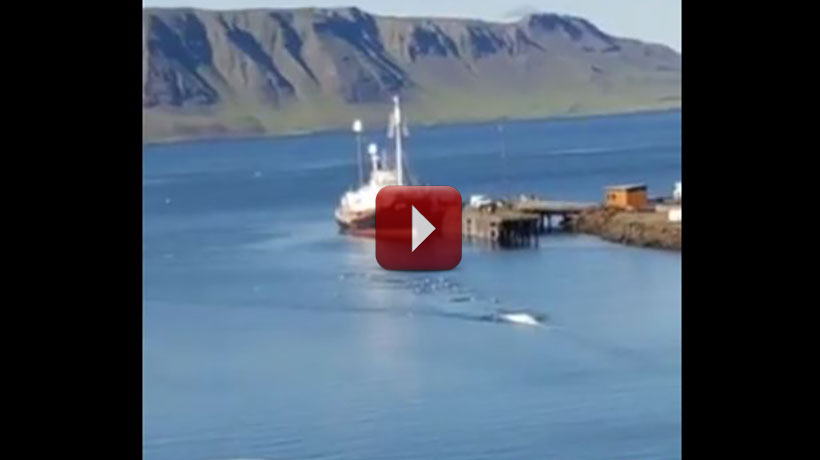Nach r 64-stündigen Fahrt kehrt das zweite Walfangschif des isländischen Millionärs Kristian Loftsson Hvalur 8 mit dem 60en für Kommerziellen Zweck illegal getöteten gefährdeten Finnwal zurück..