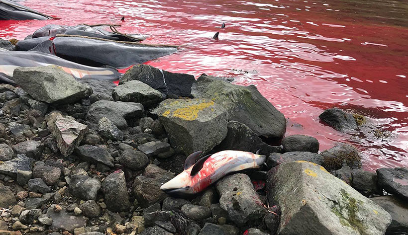 Ein Delfin wurde mehr als 3 Minuten lang gefoltert. Ein anderer Delphin, sein halber Hals war bereits tief mit einem Messer zerschnitten, lebte noch; er starb erst nach 50 Sekunden als ihm ein weiterer Barbar mit einem Pfeil durch die Offene Wunde die Wirbelsäule durchstach. Insgesamt war diese Schlachtung, wie jede andere Delfinschlachtung auf den Färöern auch, extrem grausam und schmerzhaft für die Delfine.