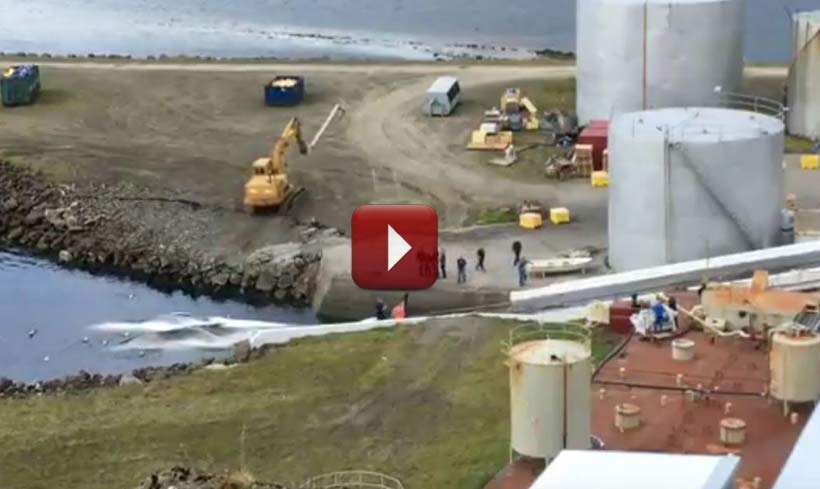 Das Walfangschiff Hvalur 8 des isländischen Millionärs Kristian Loftsson ist mit zwei illegal harpunierten vom Aussterben bedrohten Finnwalen Nummer 66 und 67 ind die Walfangsaison zurückgekehrt, die in der isländischen Walfangsaison nun auf dem Slipway der Hvalur-hf-Walfangstation in den Schlachtbereich gezogen werden.