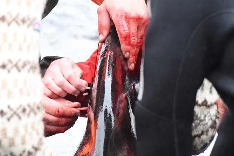 Die Crew von Sea Shepherd #OpBloodyFjords entlarvt die respektlose Entsorgung ermordeter juveniler Weisseiten Delfine in Hvannasund auf den dänischen Färöer Inseln...