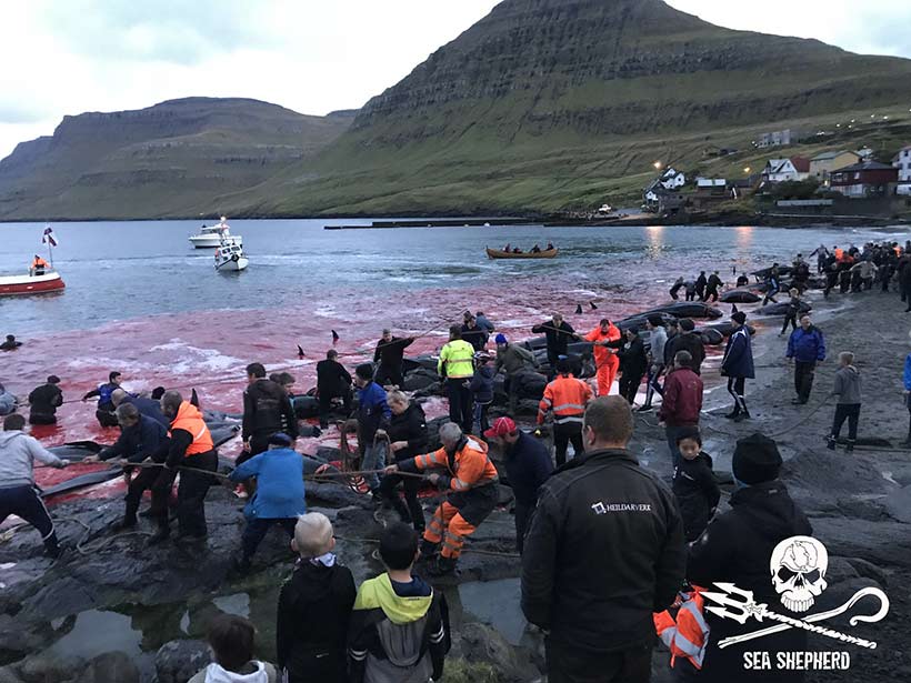 Am 16. September 2018 wurden in den Färöer Inseln beim Grindadráp in Norðragøta 14-18 Pilotwale (Familie der Delfine), darunter zwei Babydelfine abgeschlachtet. Die Mörder sind offensichtlich nicht so stolz darauf die getöteten Baby-Pilotwale neben ihren ermordeten Müttern und Familie in der Öffentlichkeit zu zeigen. Stattdessen versteckten sie die Babydelfine hinter einem Lastwagen im Hafen um sie vor den Augen der Touristen und Sea Shepherd Crew zu verbergen, um sie dann später im Meer zu entsorgen (erfolglos, wenn das ihre Absicht war).