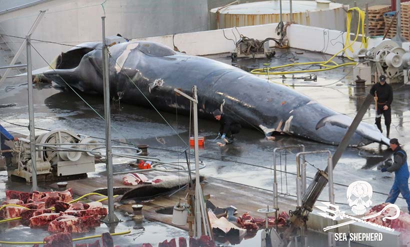 10. September 2018: Das isländische Walfangschiff Hvalur 9 ermordet gefährdete Finnwale Nr.128 und 129.