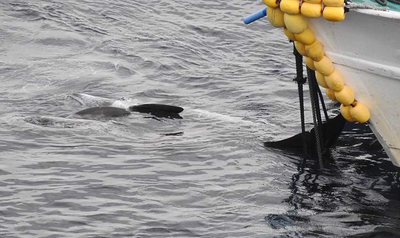 Heute fand in Taiji Japan ein weiterer Terror gegen Delfine statt. Die japanische Delfin-Killerflotte trieb heute Morgen eine Breitschnabel Delfinfamilie (Melon Headed Whales) von über 51 Individuen in die Bucht.