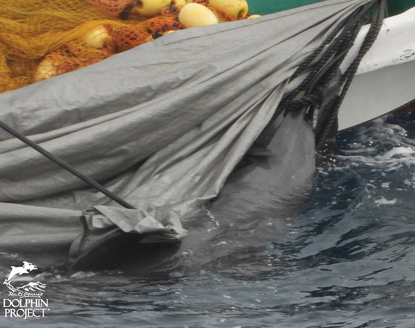 Heute Morgen gegen 6:00 Uhr verliess die japanische Delfin-Vernichtungsflotte den Hafen von Taiji. Es dauerte nicht langen, kurz nach dem Auslaufen aus dem Hafen schwamm ihnen eine Baby säugende Risso’s Delfinfamilie über die Quere...