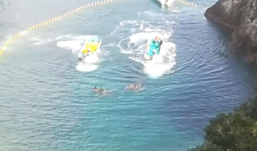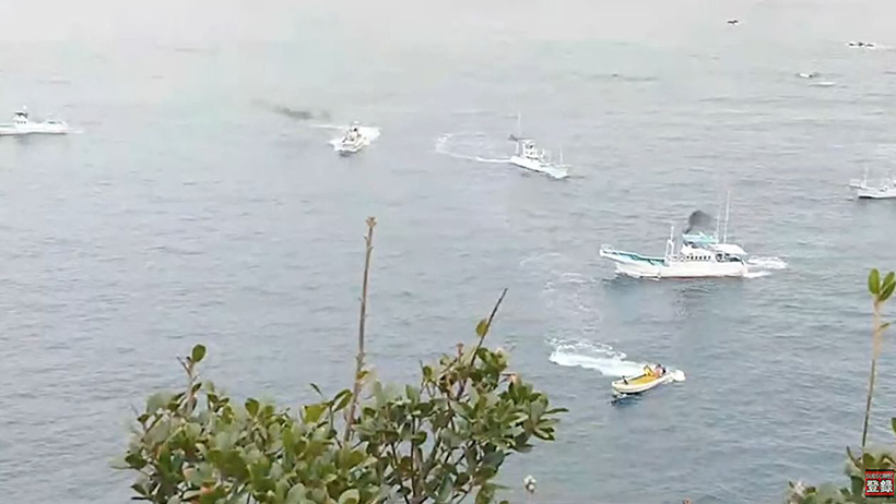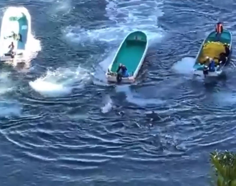 Ungefähr 30-35 Grosse Tümmler wurden heute morgen in Taiji Japan in die Bucht terrorisiert. Eine andere Delfinfamilie konnte noch währen der zweiten Jagd fliehen.