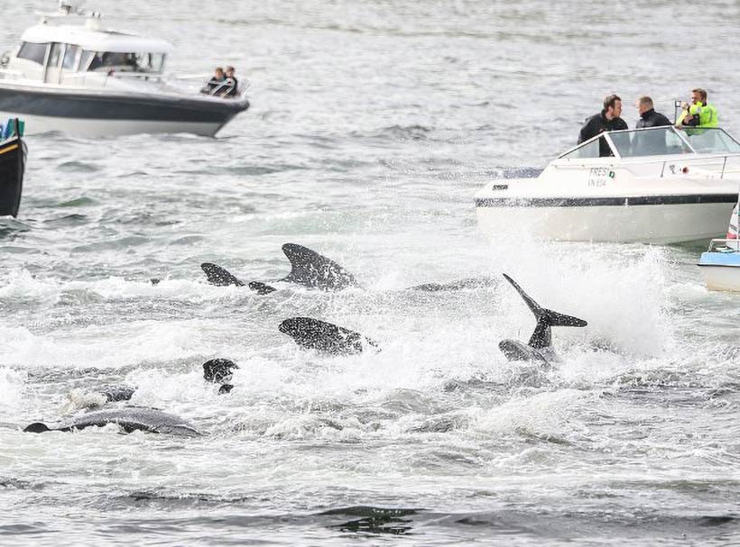 In der Nacht vom Samstag zum Sonntag wurde auf den Färöern eine Delfinfamilie stundenlang mit Booten terrorisiert, abermals absichtlich überfahren, nach totaler Erschöpfung von einer reudigen, blutrünstigen Meute in Blutlust und zu ihrem Vergnügen ermordet, 14 Stunden später eine Weitere...
